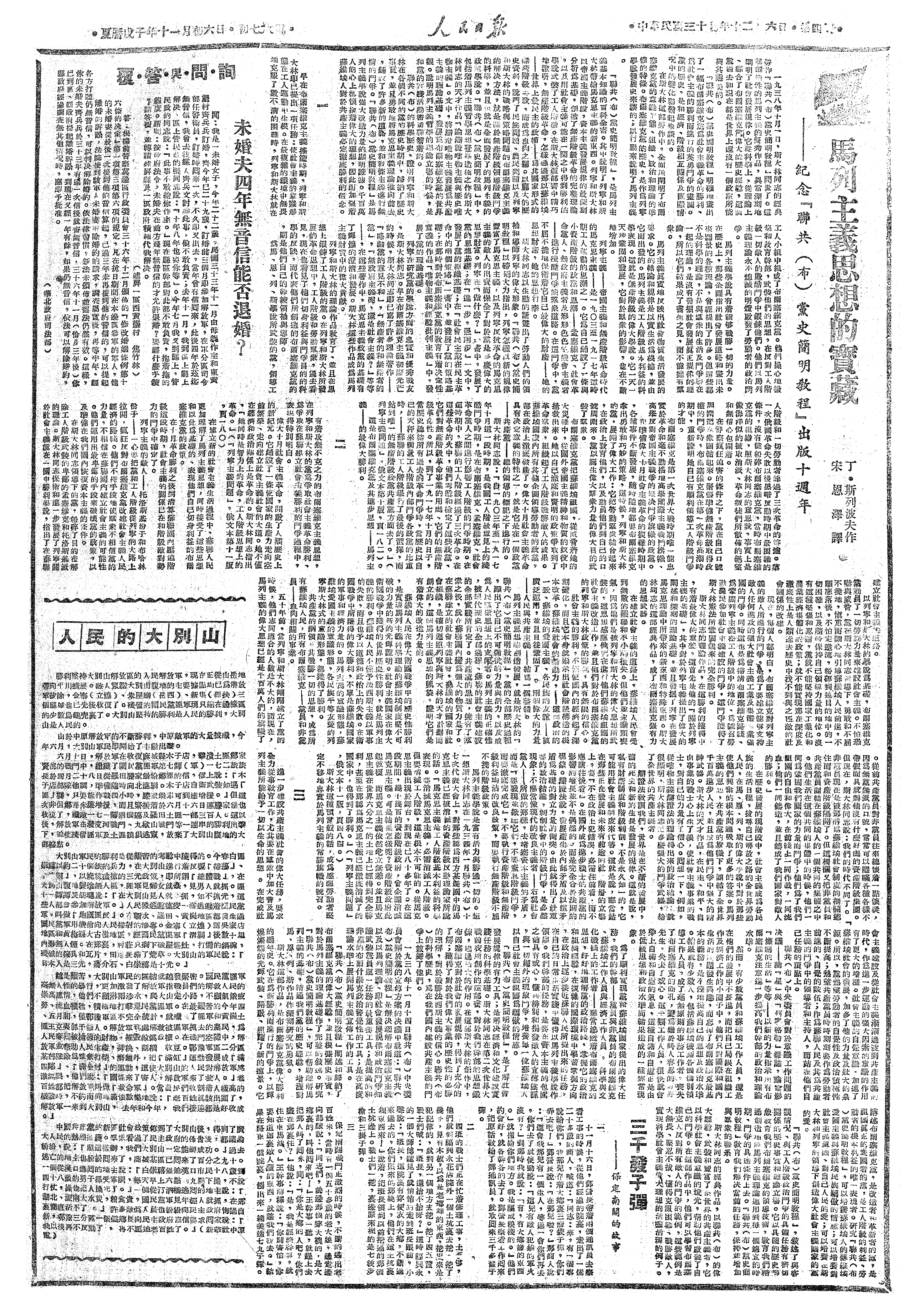 “联共(布)党史简明教程”教育我们解决当前的任务,保持并增加与群众的联系。