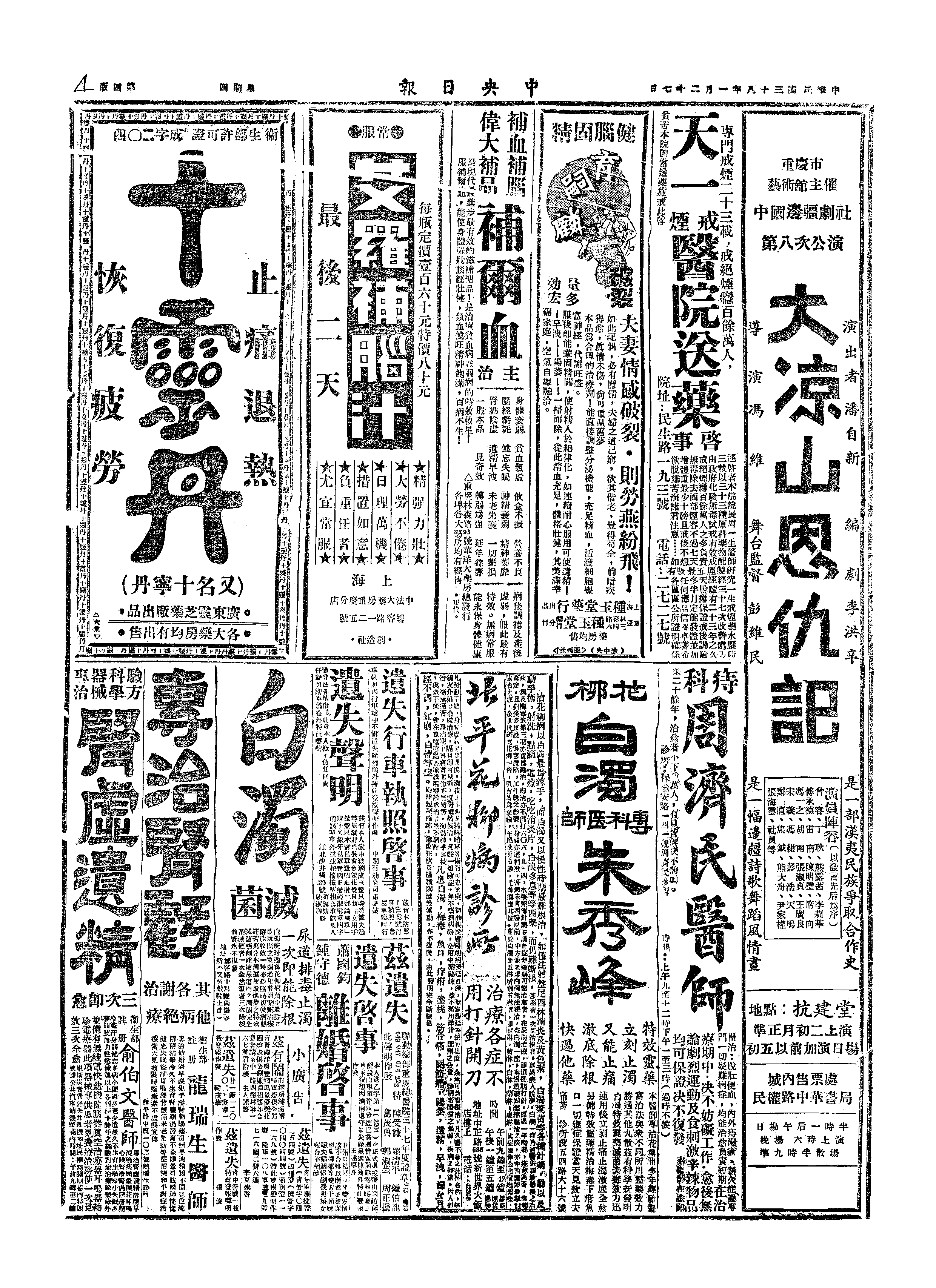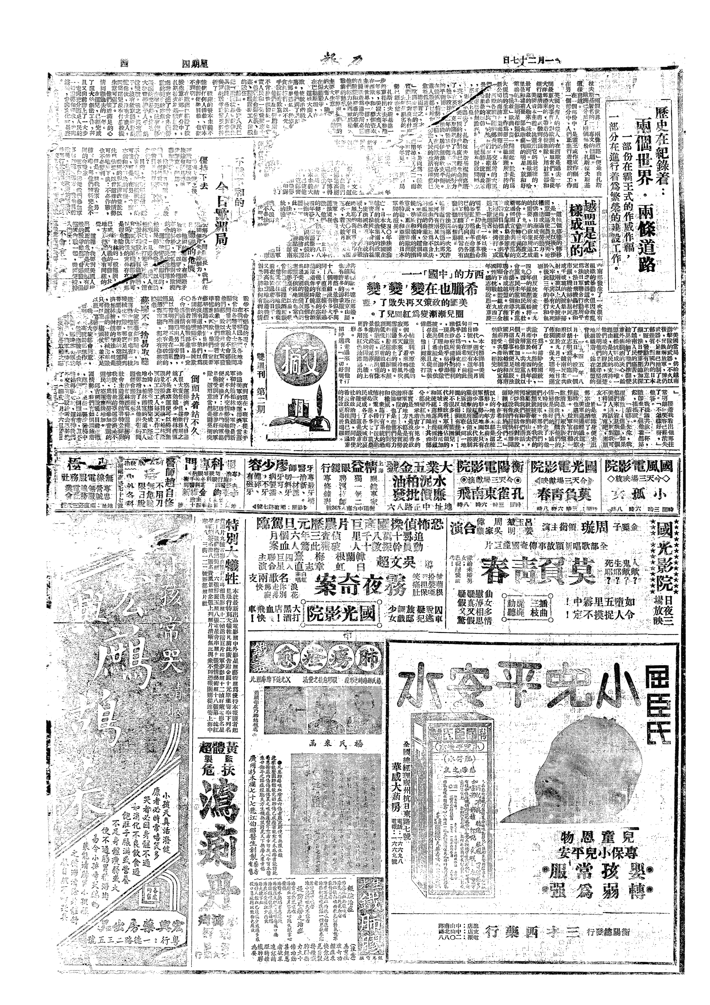 丁、自沪开台湾之「太平」轮在吴淞口外与「建元」轮互撞,均沈没,遇难者约千人。
