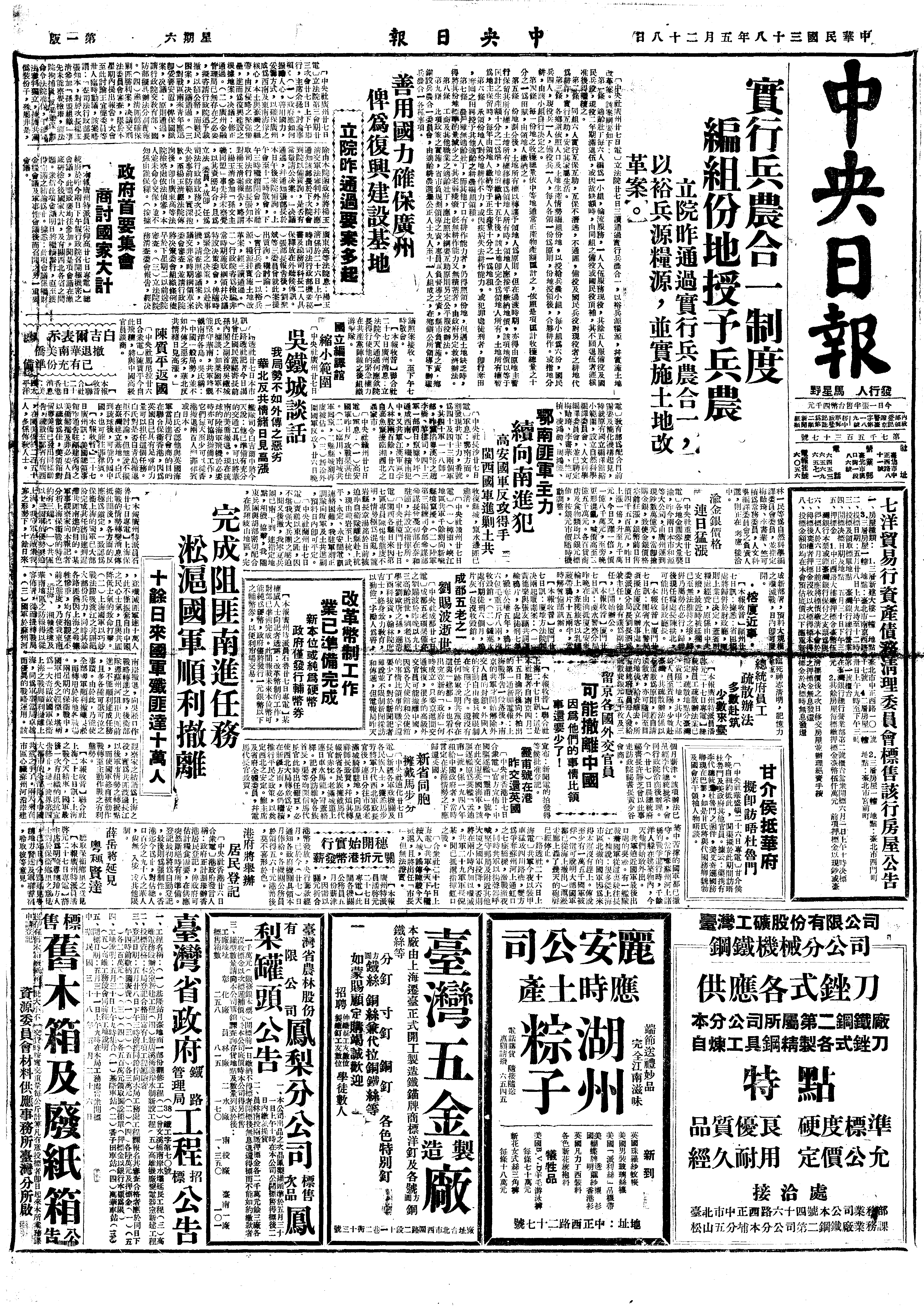 中华民国史大事记>19490528
