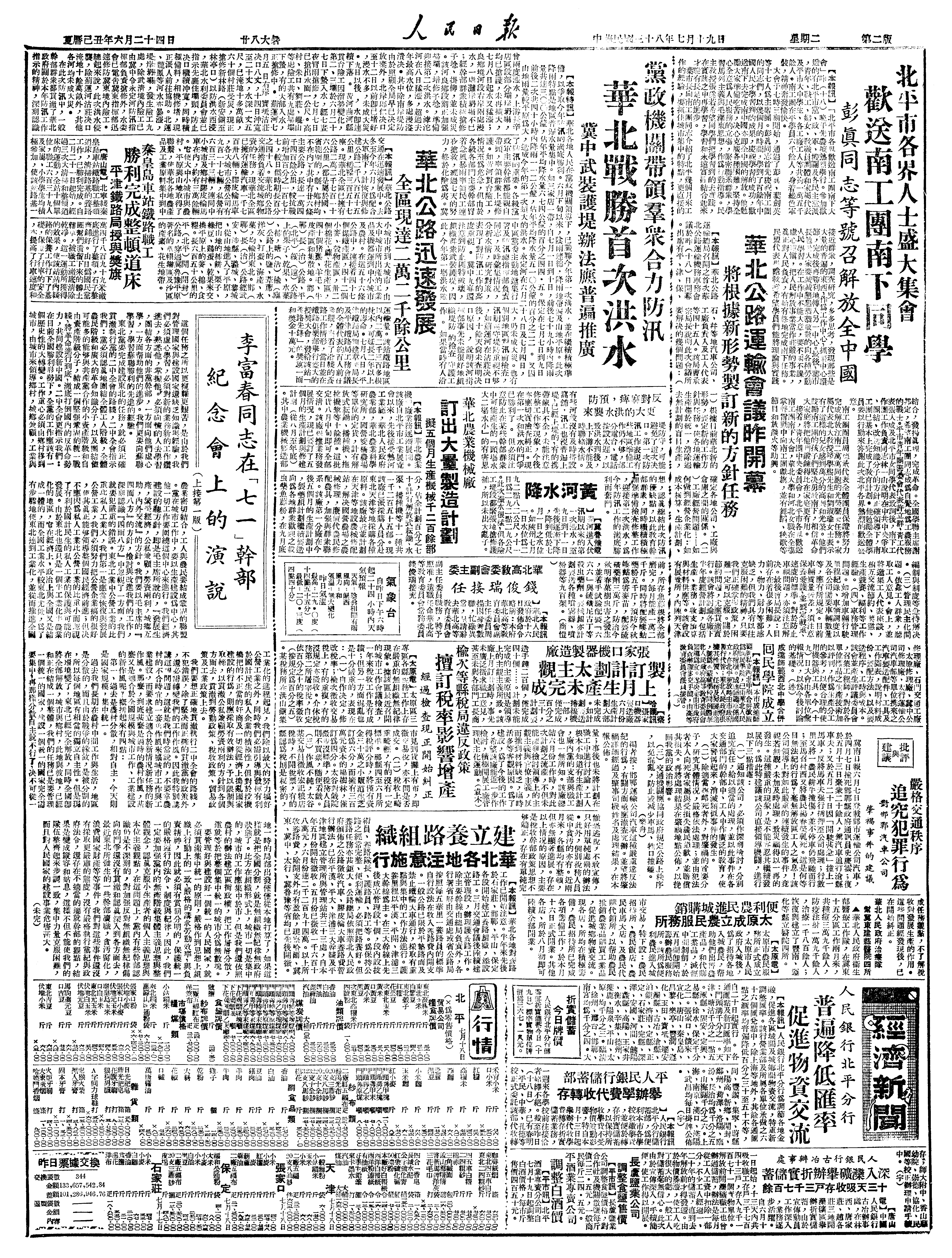 07月19日 星期二 北平晨睛79° 下午昙。