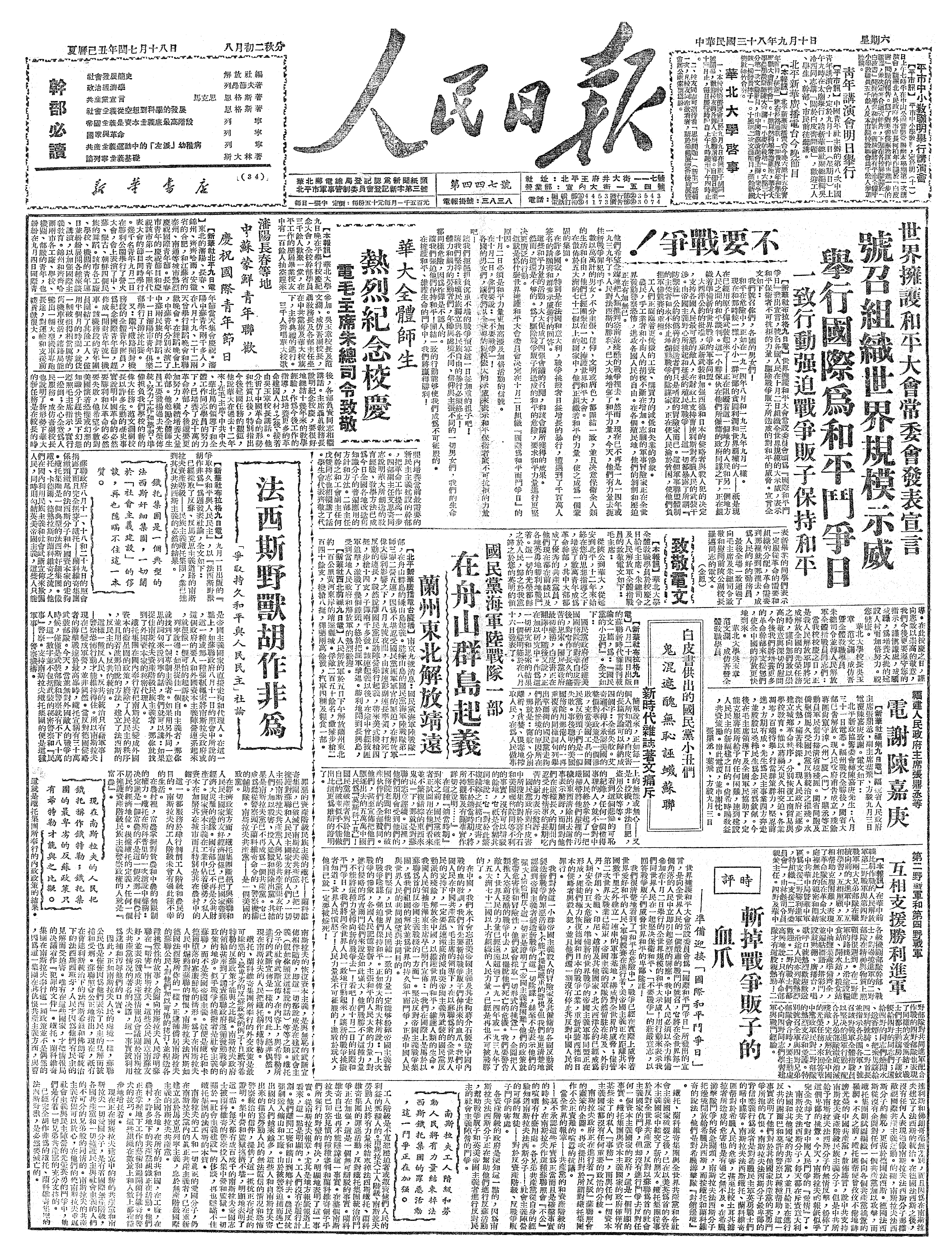 中华民国史大事记>19490910