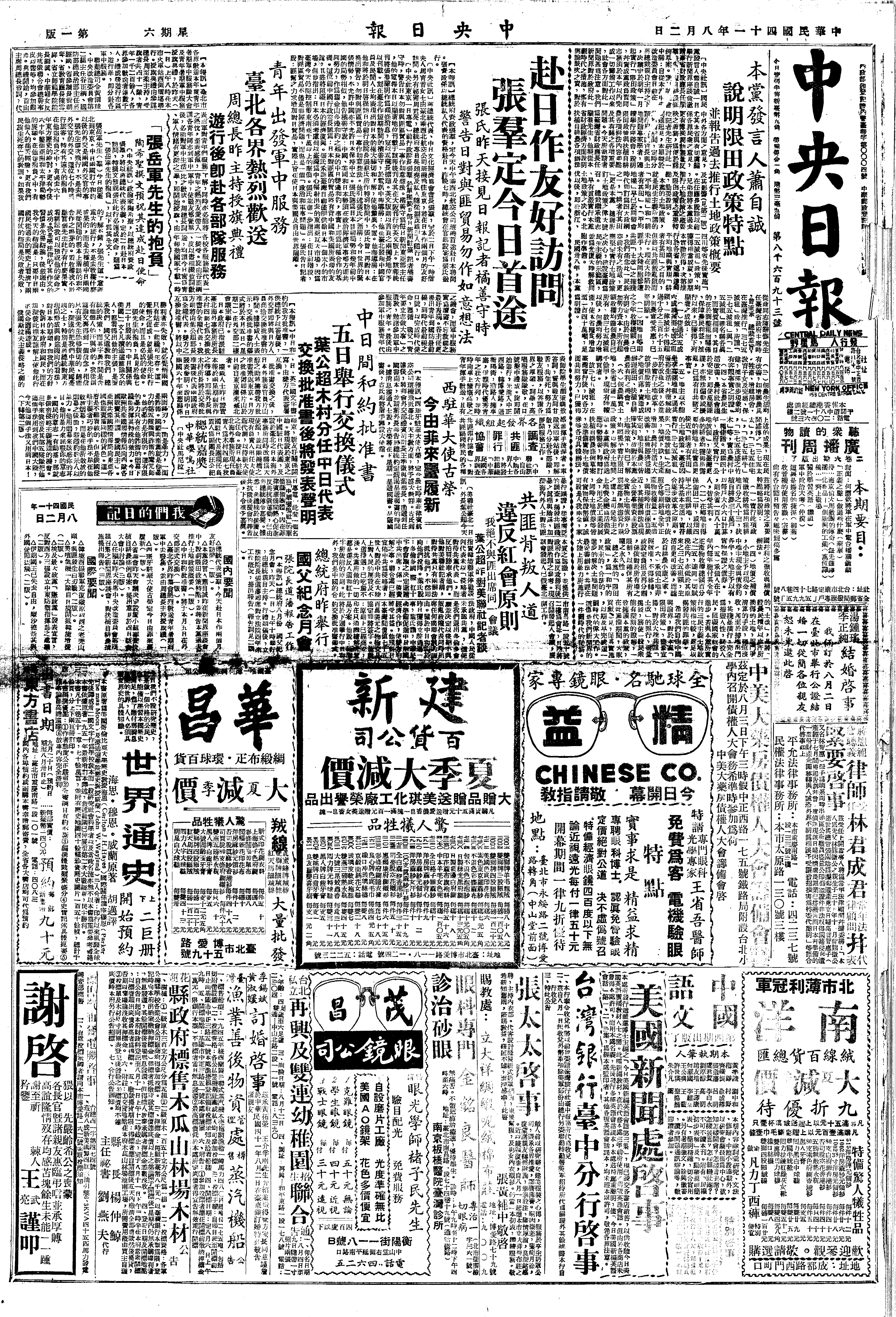 蒋中正大事长编>19520802