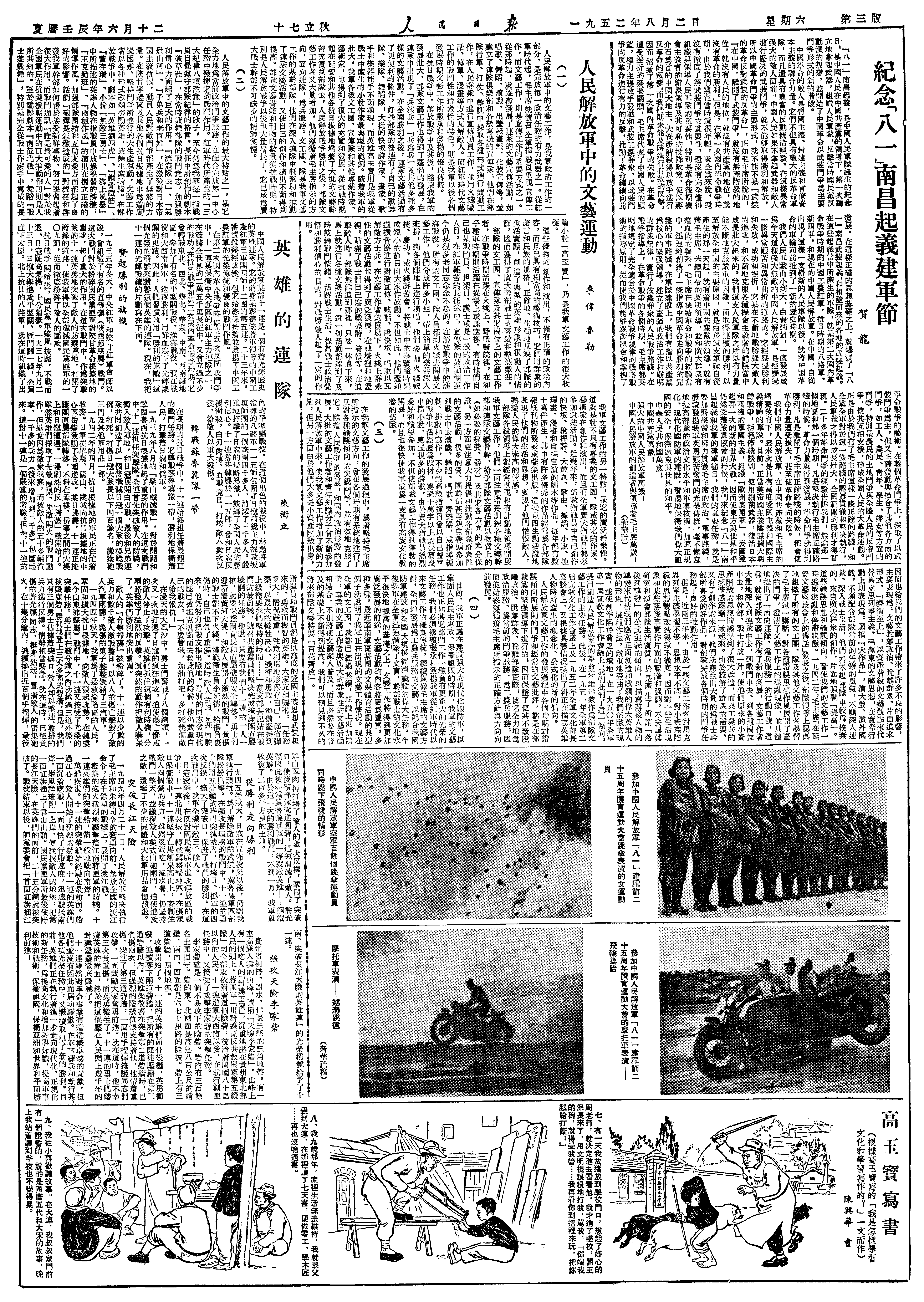 下午四点和松松到北海,看解放军武装军武装游泳与灿板比赛。武装(有)(游)泳有一二百人加入,从绪澜堂起到对岸,确是勇敢而耐劳的工作。五点一刻散。午后二点,余与拖文澜、钱雨农、杨季瑶、艾提五人谈最后四个贪污犯之处置问题。