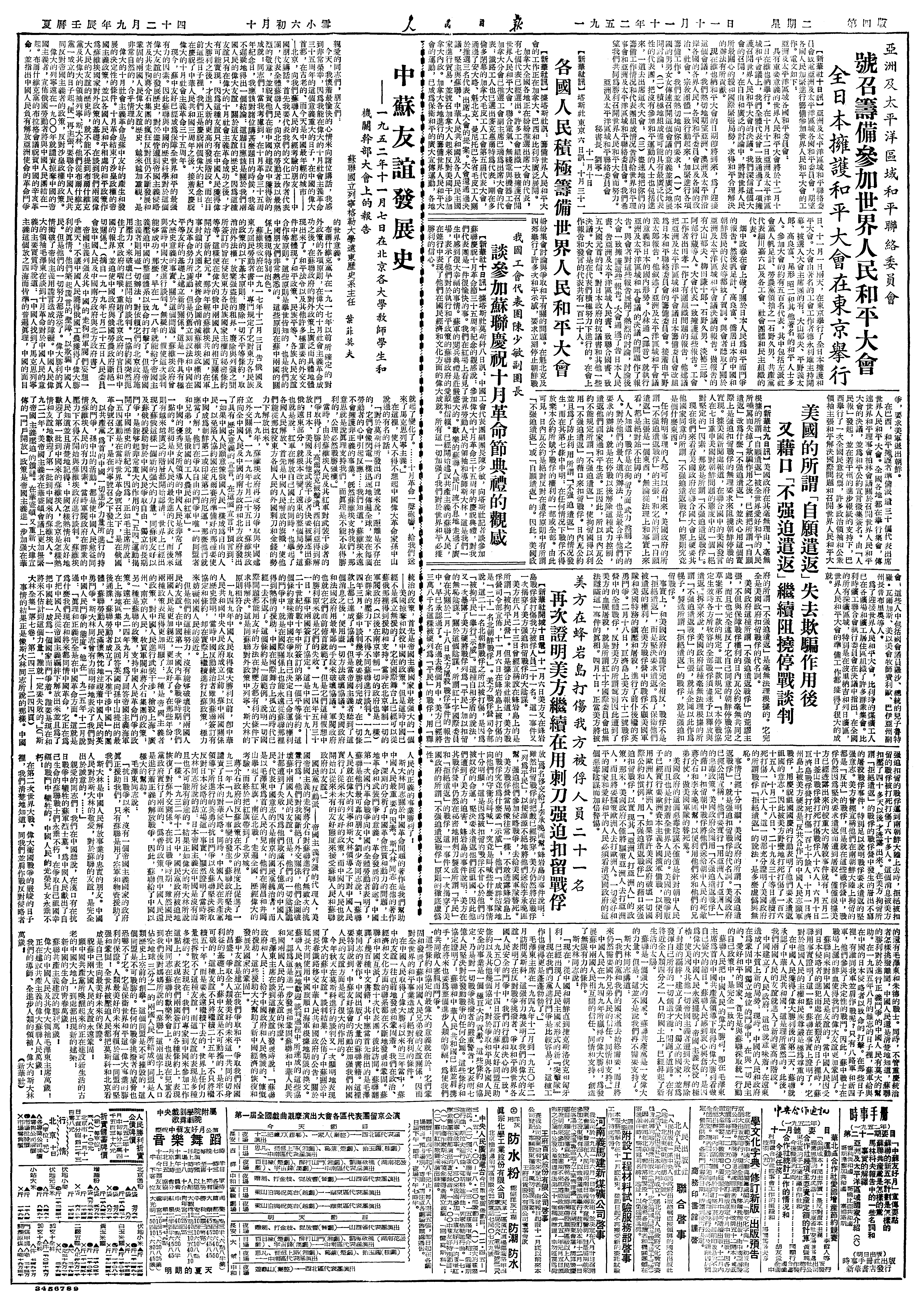 抗美援朝大事记>19521111
