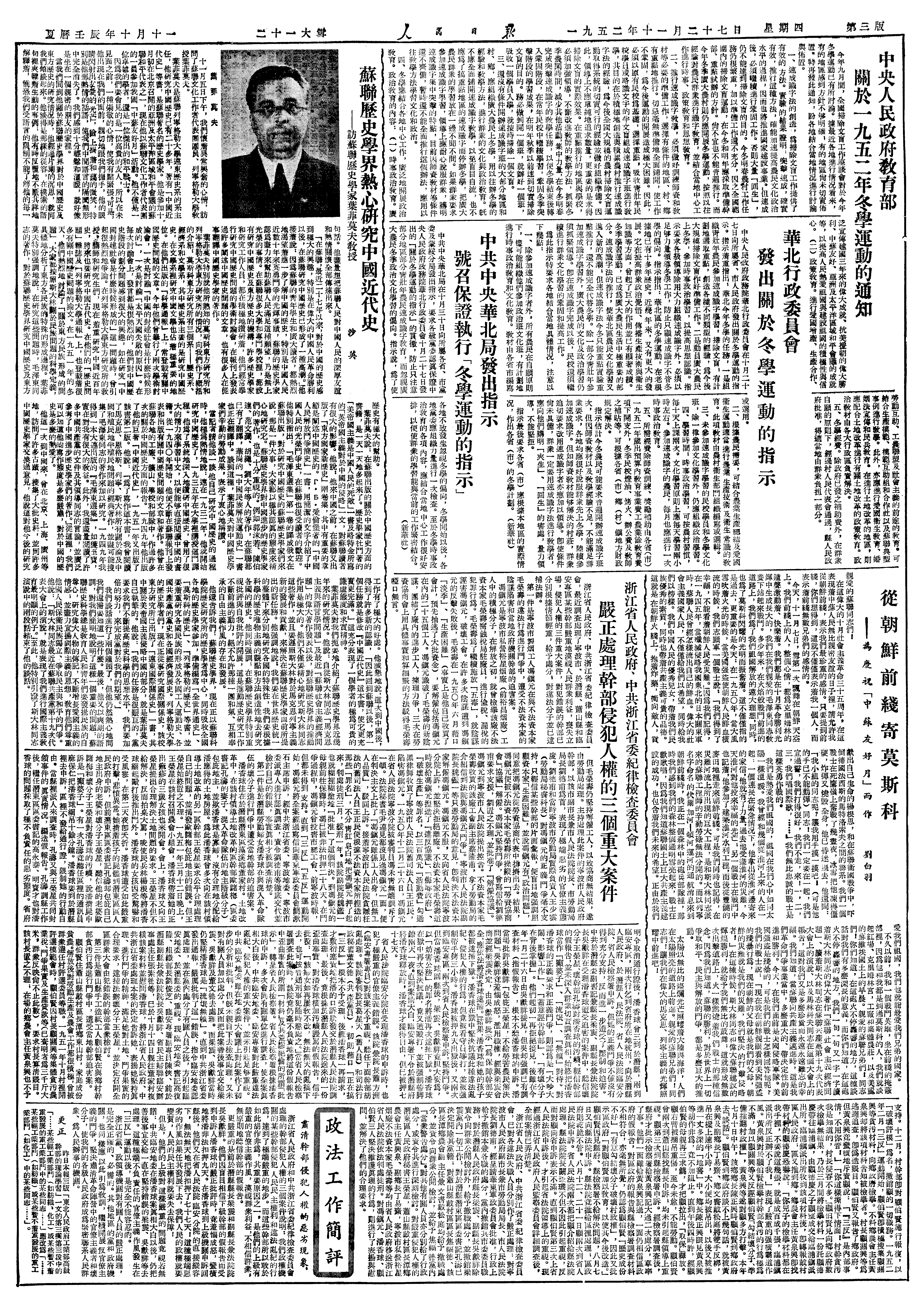 竺可桢日记>19521127