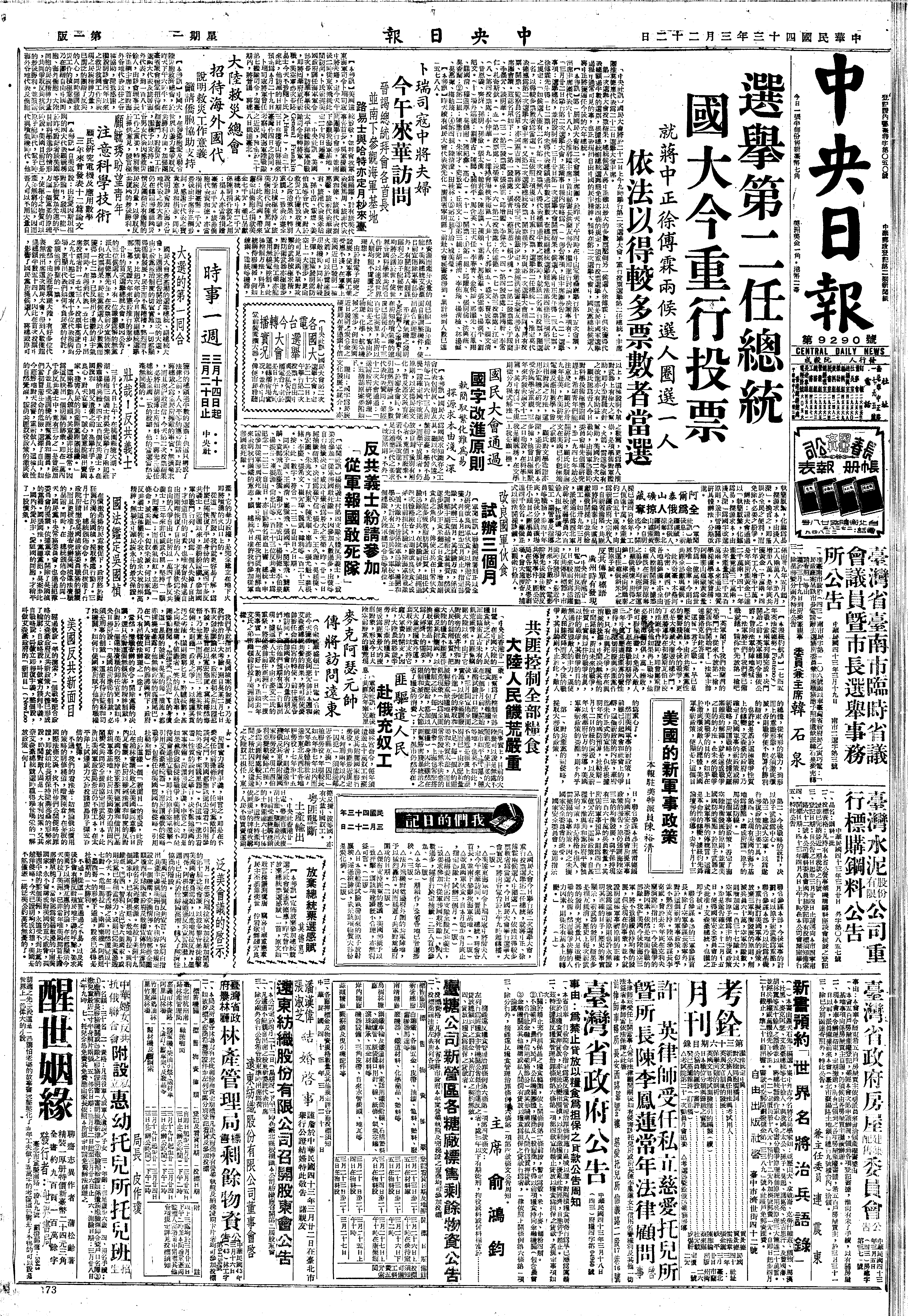 蒋中正大事长编>19540322