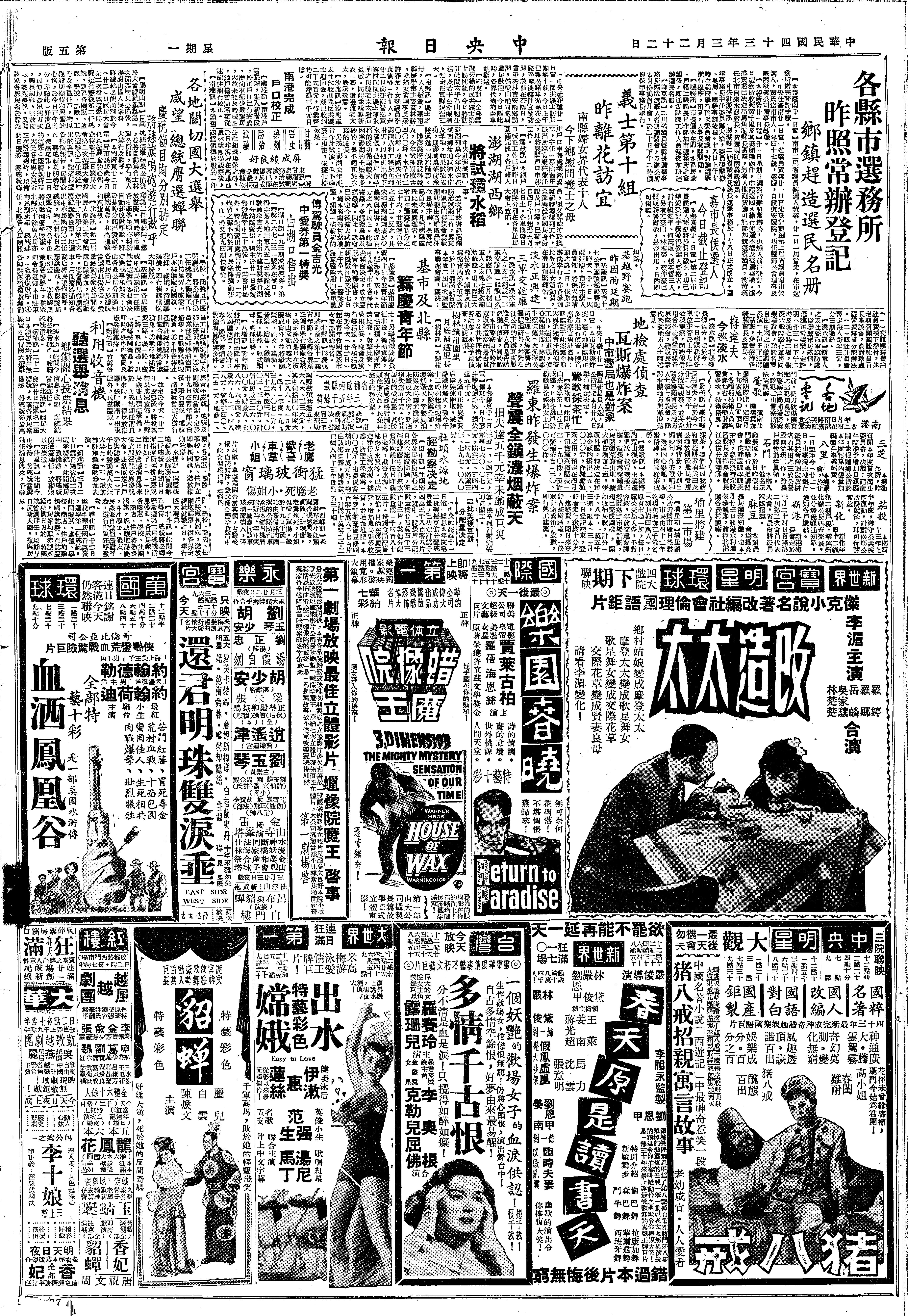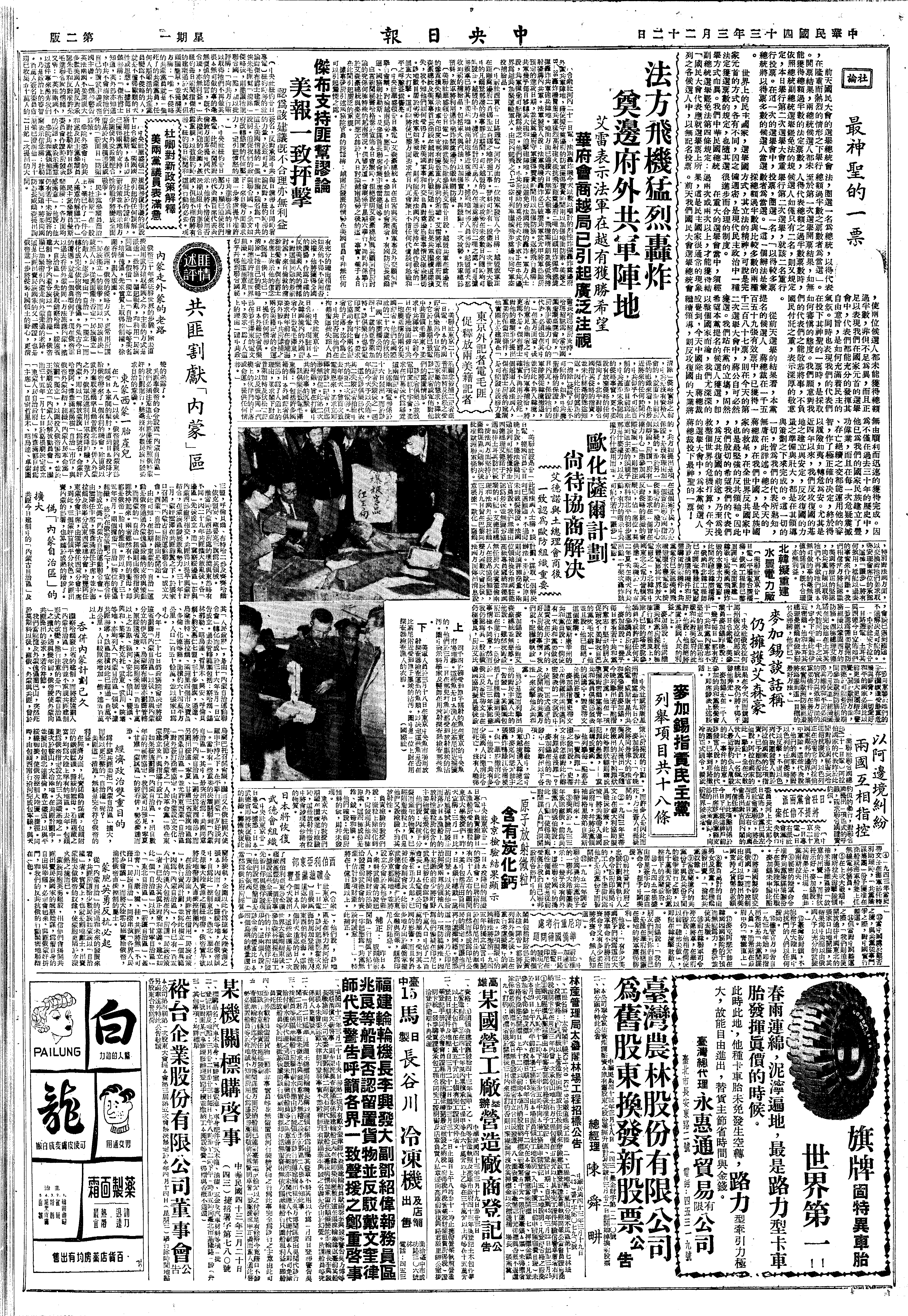 蒋中正日记>19540322