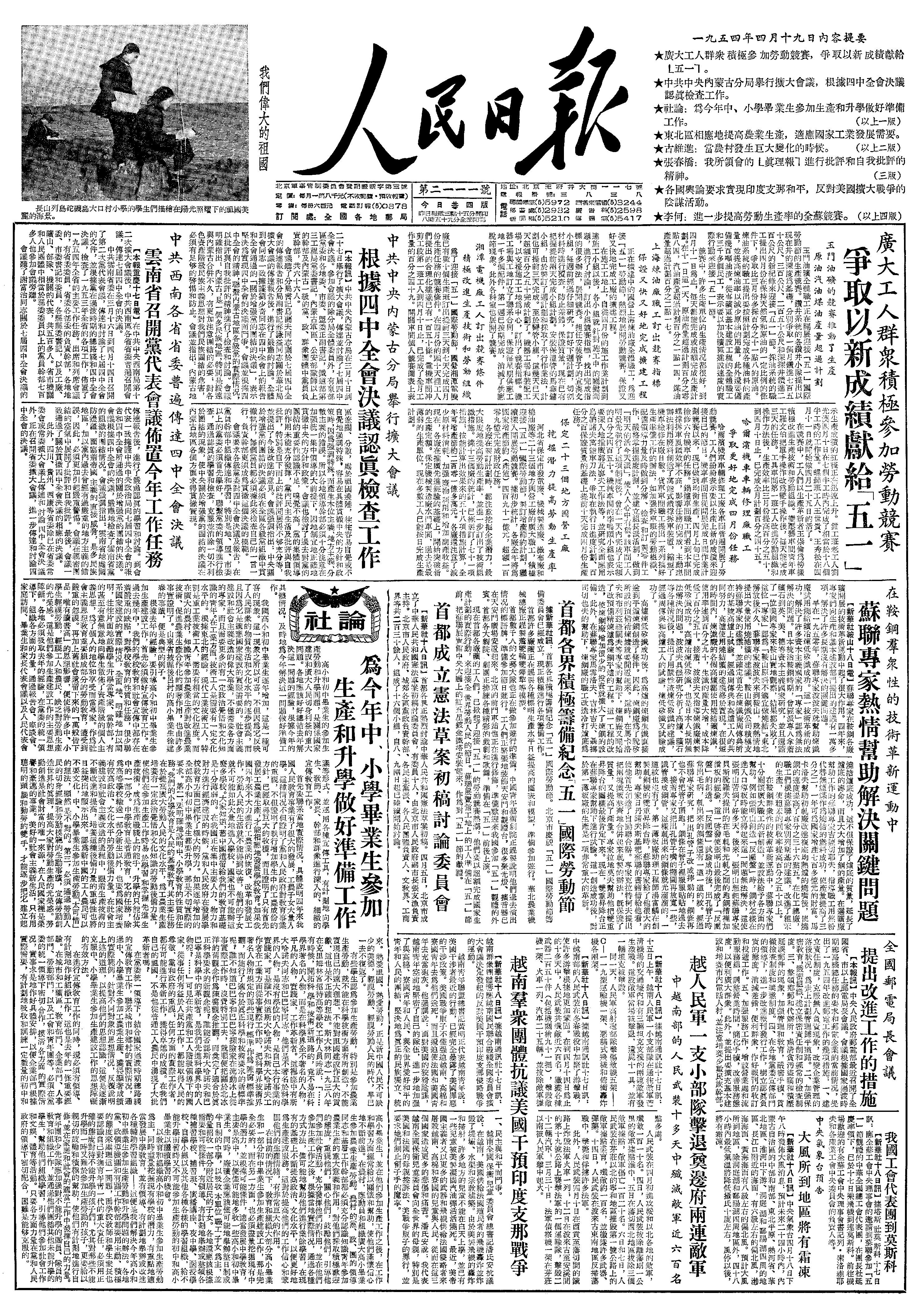 △毛泽东主席任命周恩来外长为出席日内瓦会议的中国代表团首席代表,外交部副部长张闻天、王稼祥、李克农为代表。