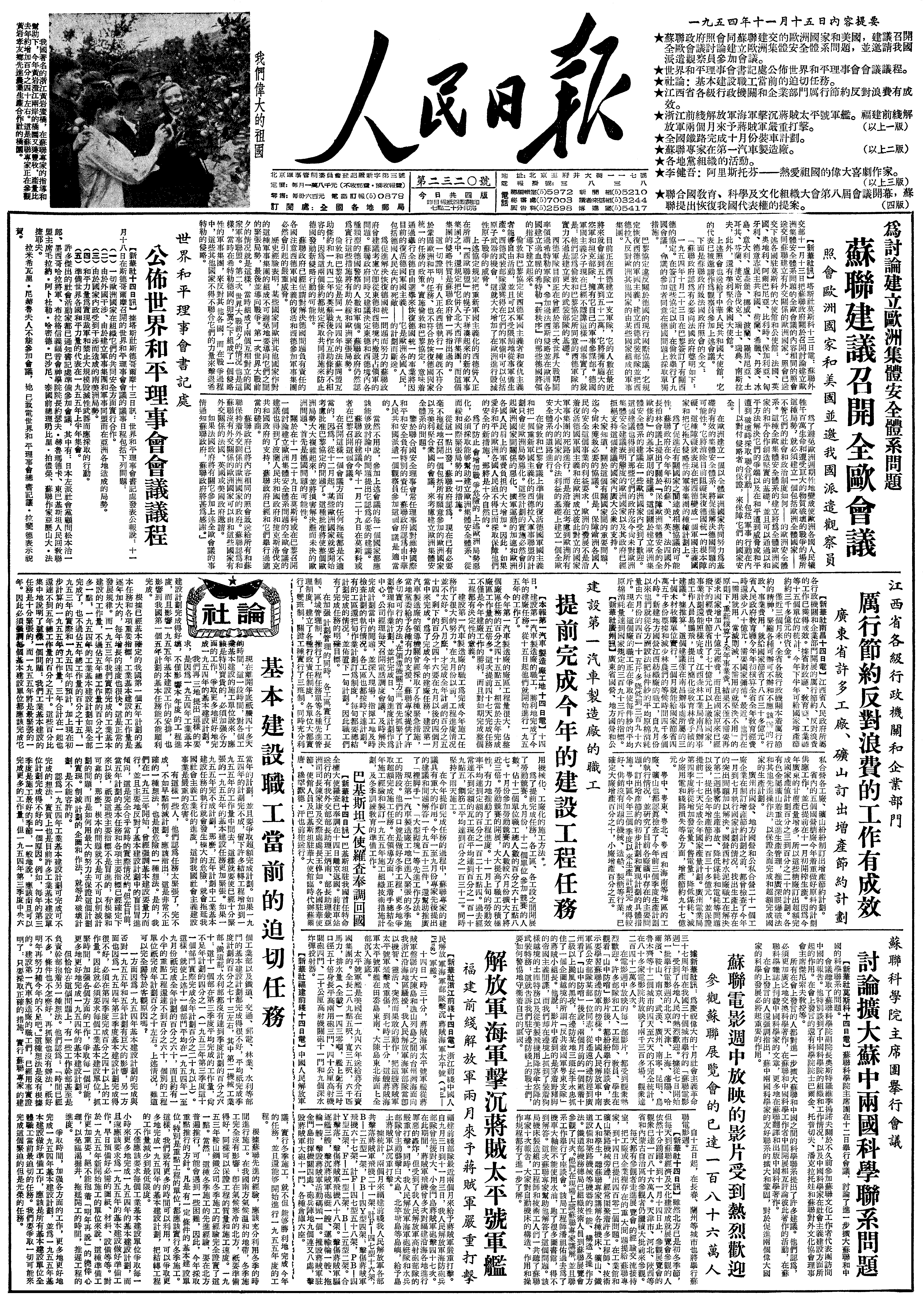 陈云在北京主持中共中央会议,讨论第一个五年计划草案。在北京的中央委员、候补中央委员、中央和国务院有关部门负责人出席会议。十五日,陈云在会上传达毛泽东、刘少奇、周恩来对第一个五年计划草案的指示。