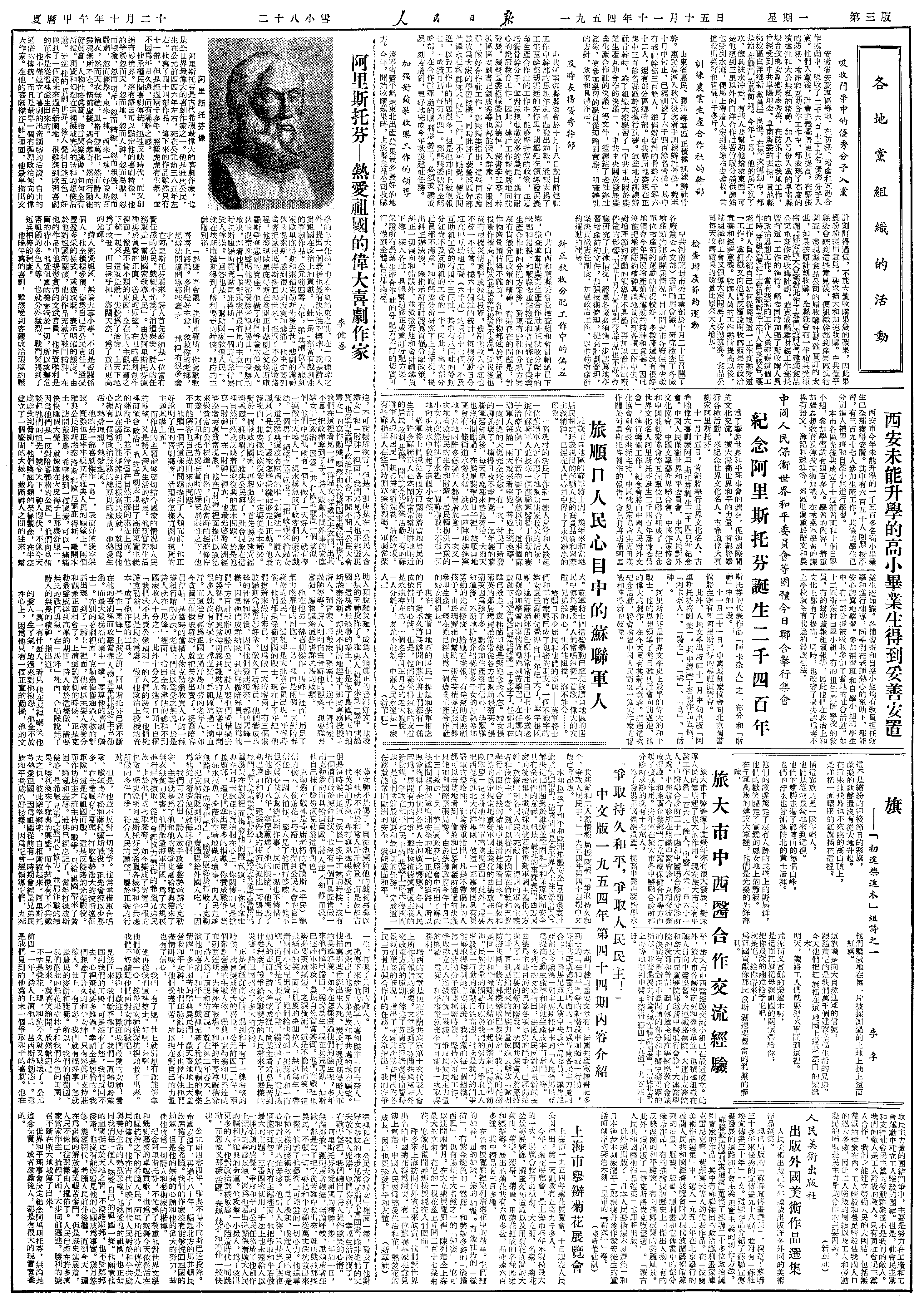 上午赴所,继续整理辉县报告图版。新来初中毕业练习生7名。郑所长来,谓最近将出国,为期约3个月始返;谓所中应发动“红楼梦研究”的讨论。与尹达同志联系,晚间由尹达同志做启发报告。下午苏秉琦同志由洛阳返所,同用晚餐后偕往历史一所,听尹达及向达二位所长做报告,散会时已10时许。