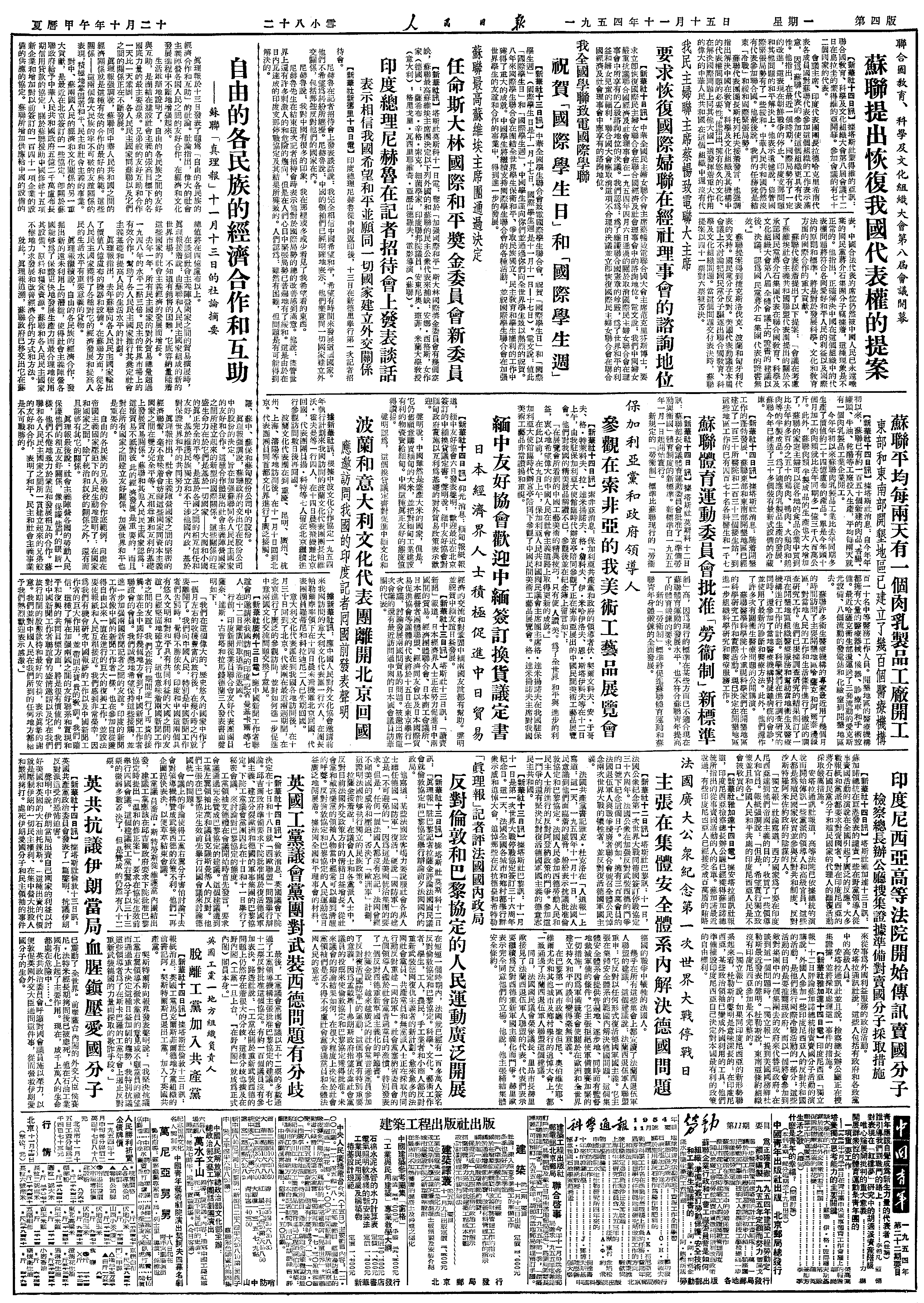真理报于13日发表了题为“自由的各民族的经济合作和互助”的社论。
