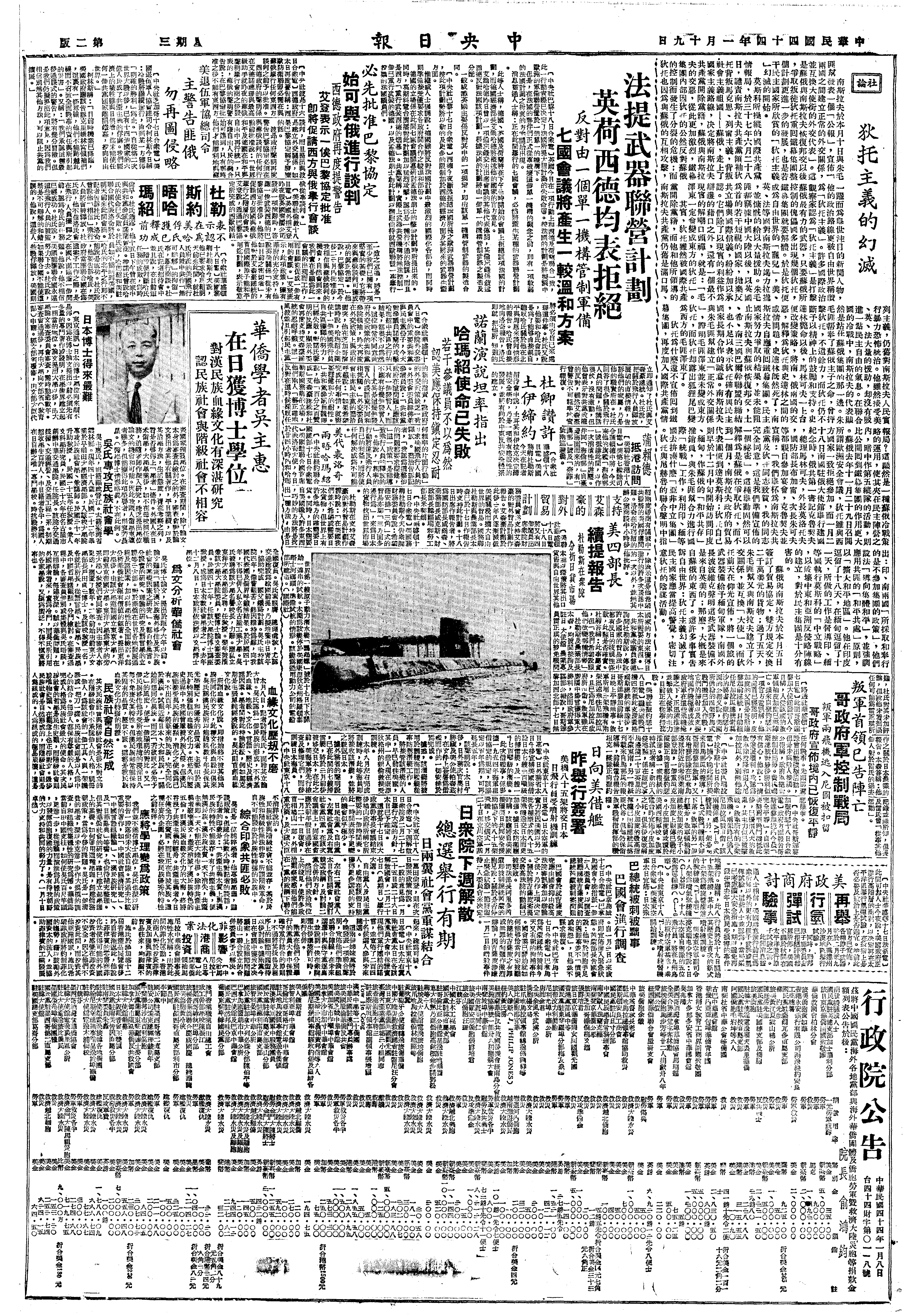 (《读卖新闻》,昭和三十年01月19日,第二版)
