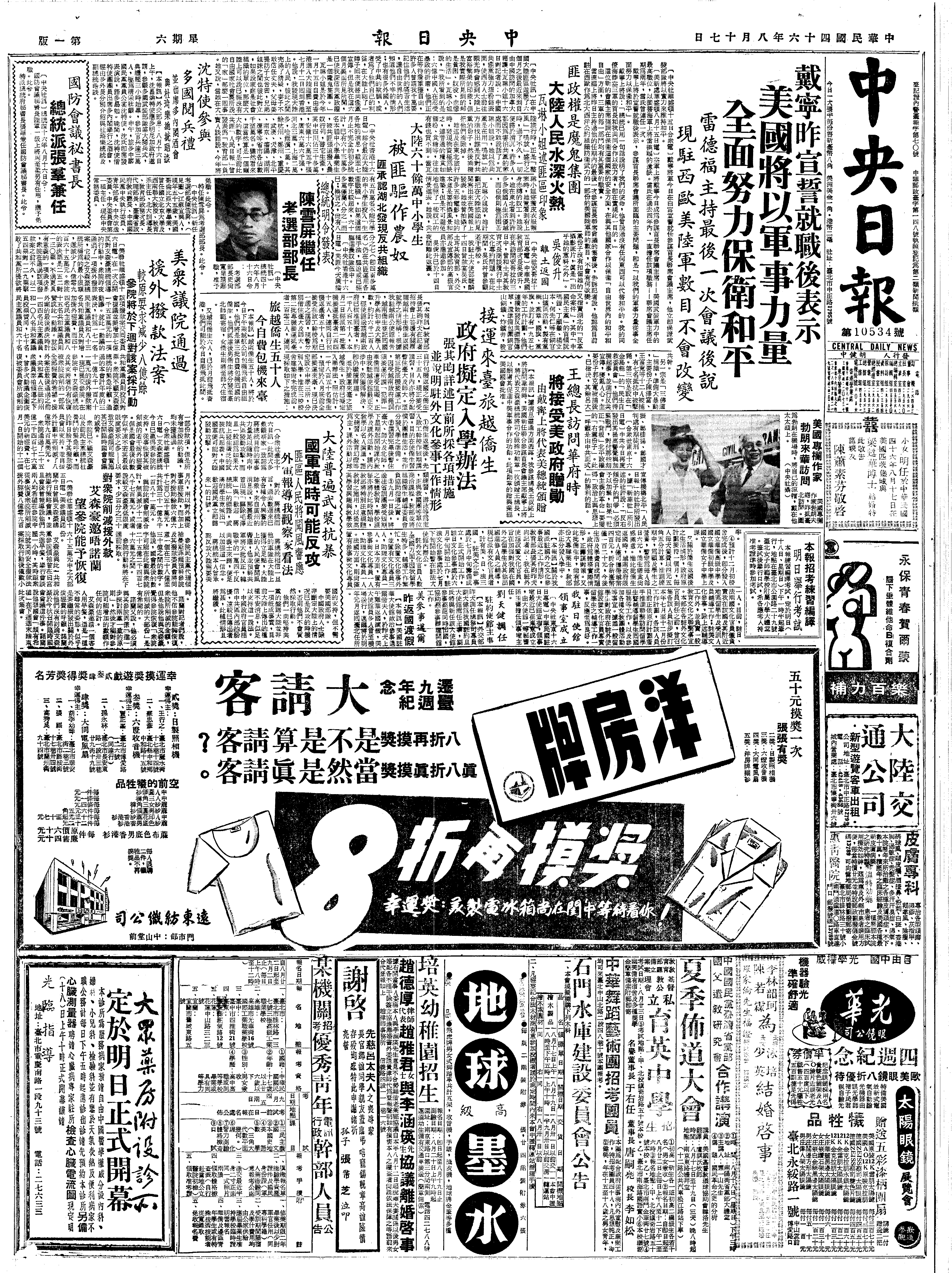 19570817B4-白宫发表声明艾森豪威尔再次要求不要削减援外拨款