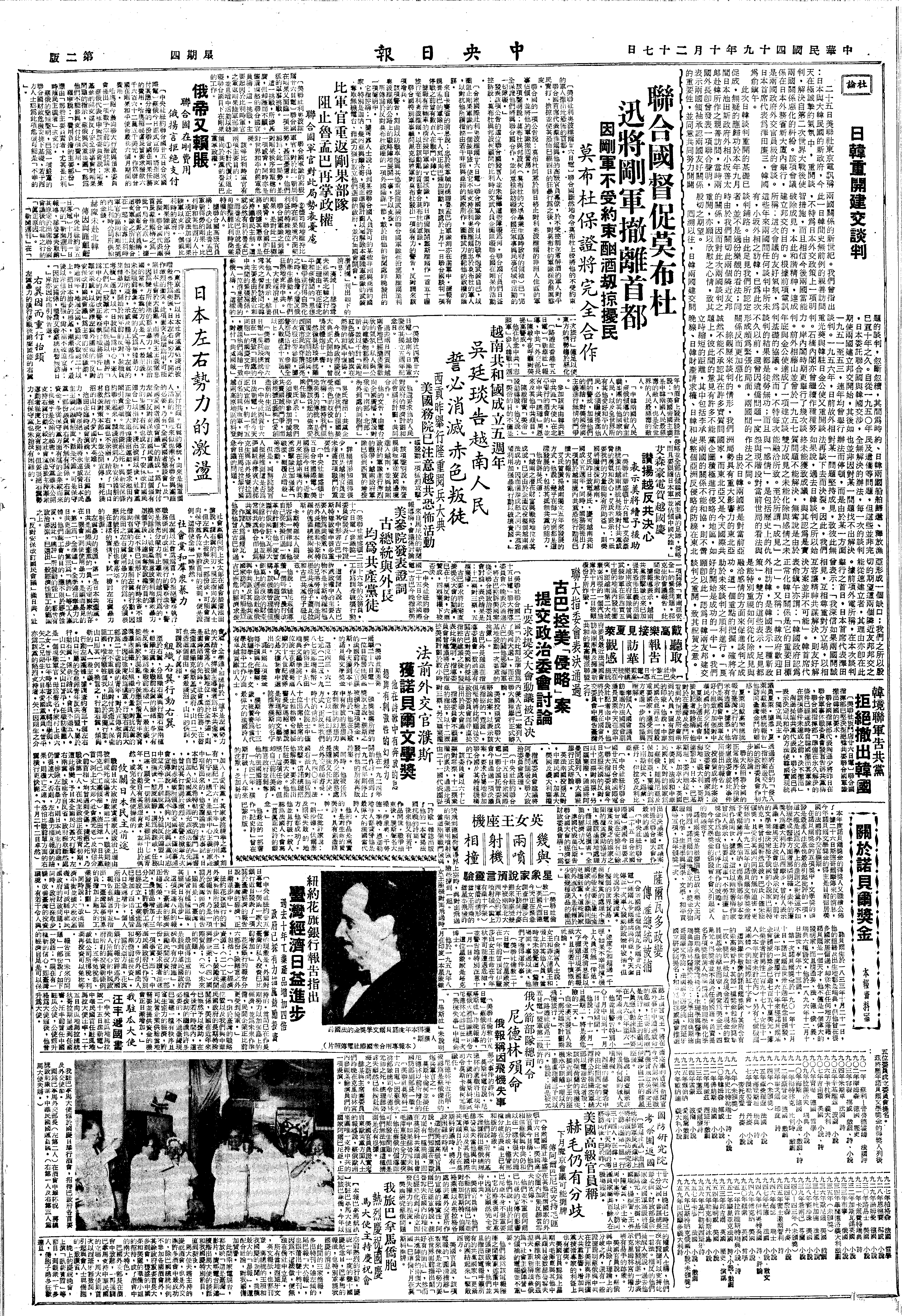 △下午召见庄乃德谈寮、越事,未提致爱克意见书,惟对其说明目前在其竞选中金门之辩论,如有记者来问时,我将以尼氏所说者答之,以安其心也。