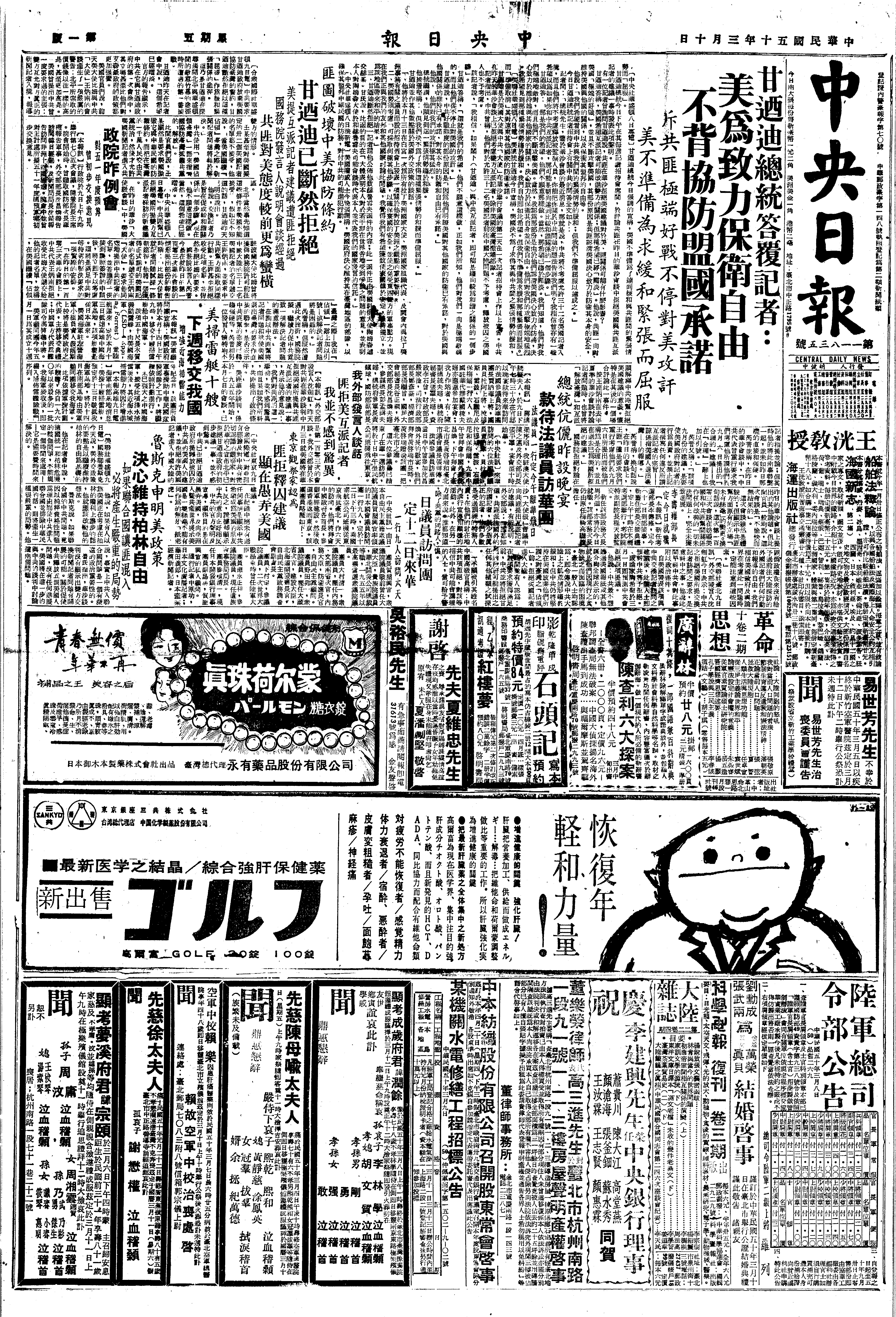 19610310B4-怀特宣布美舰已奉命不去刚果