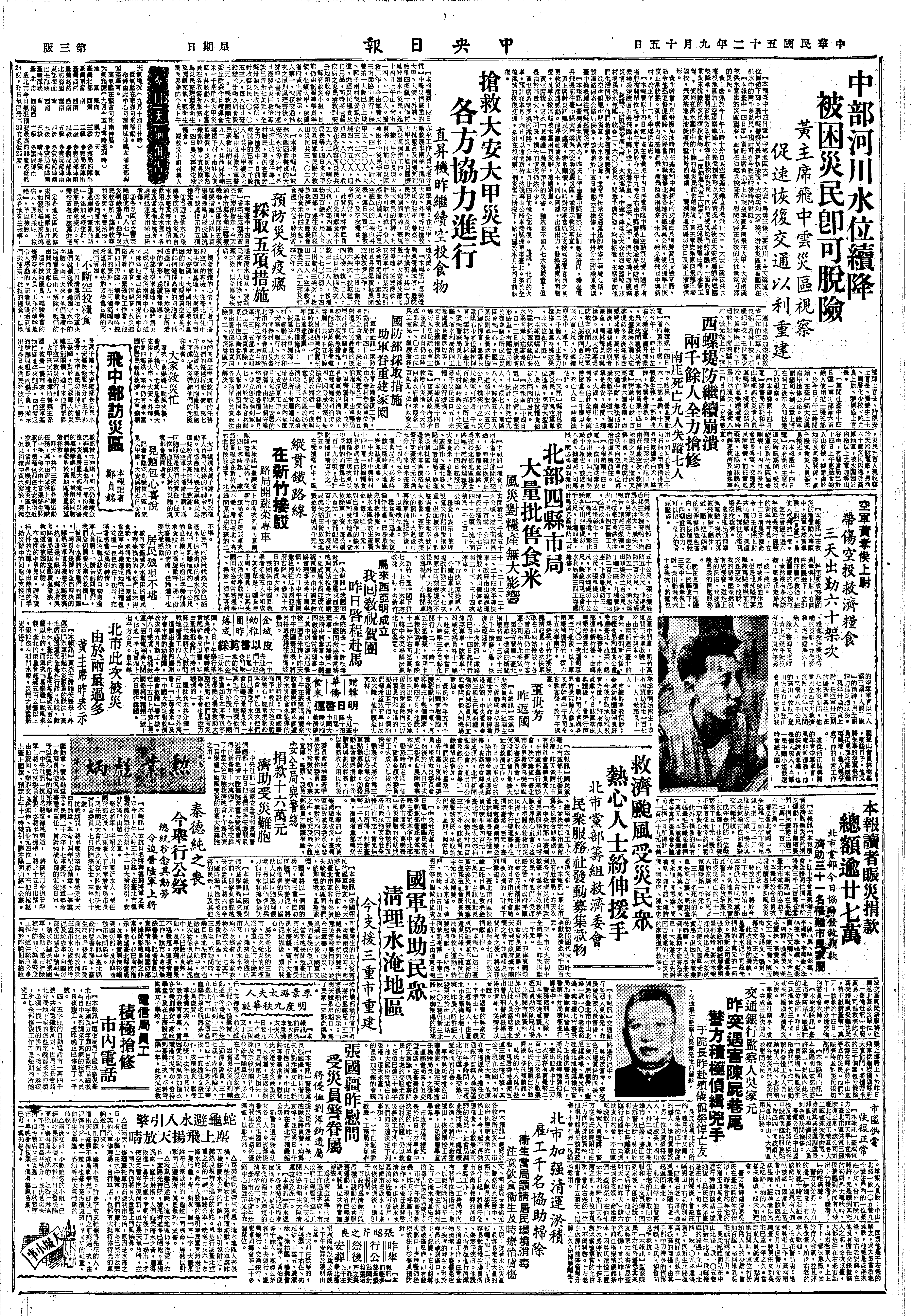 台风一去,洪水大来,幸我南部不大受损失。