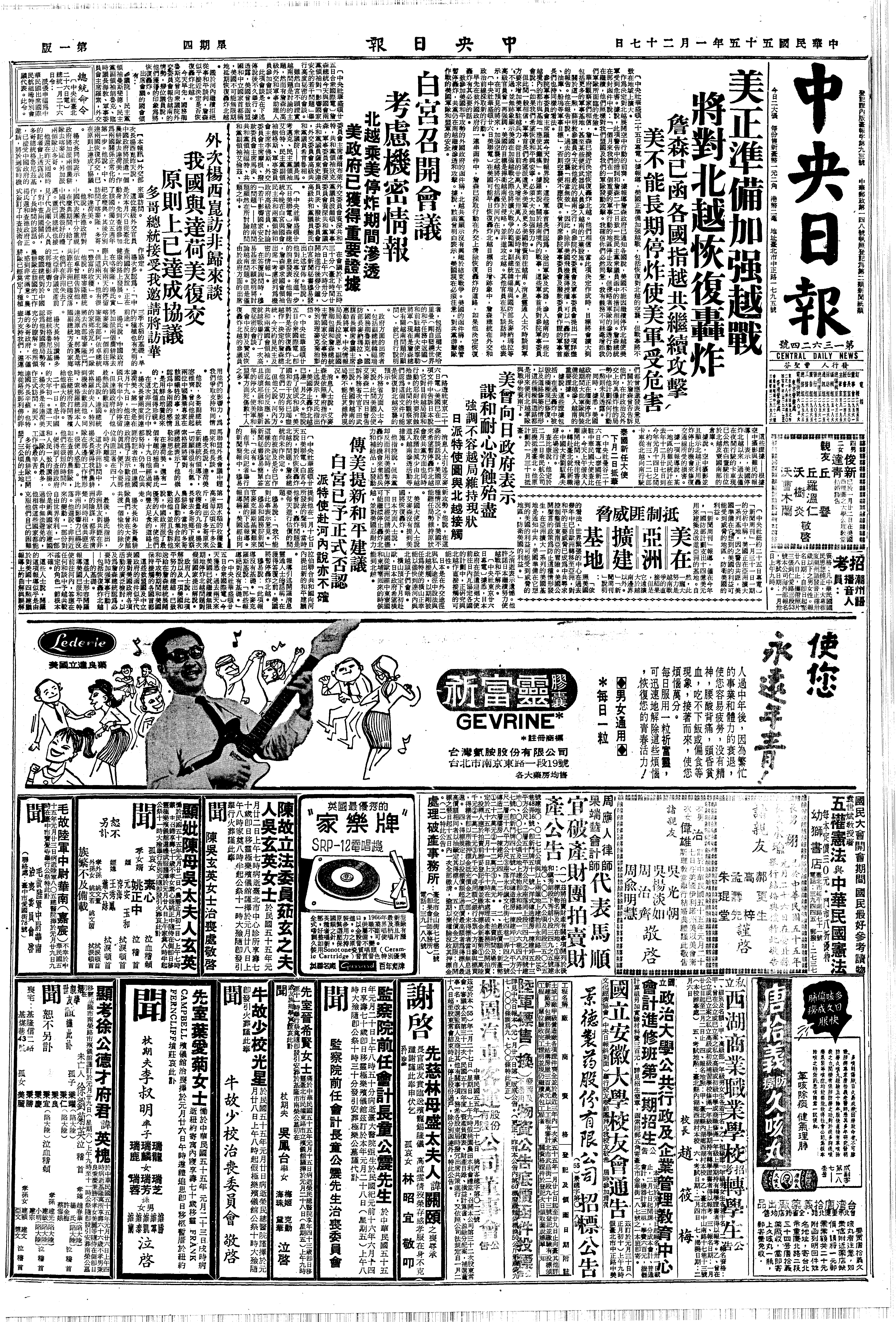 19660127B4-美向一些国家传话“不能无限期停炸北越”