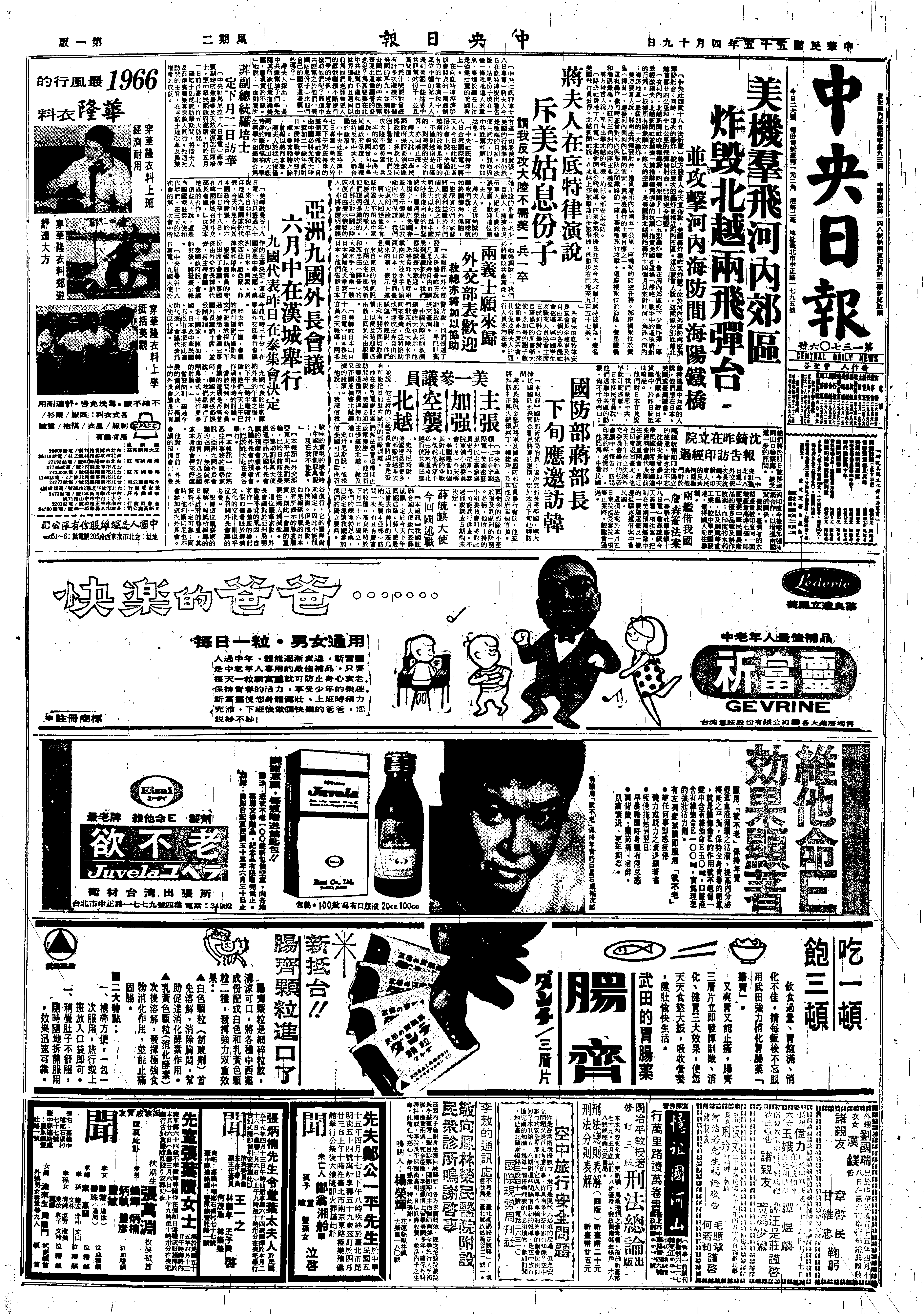 19660419B4-美空军为驾驶员规定轰 炸越北方次数