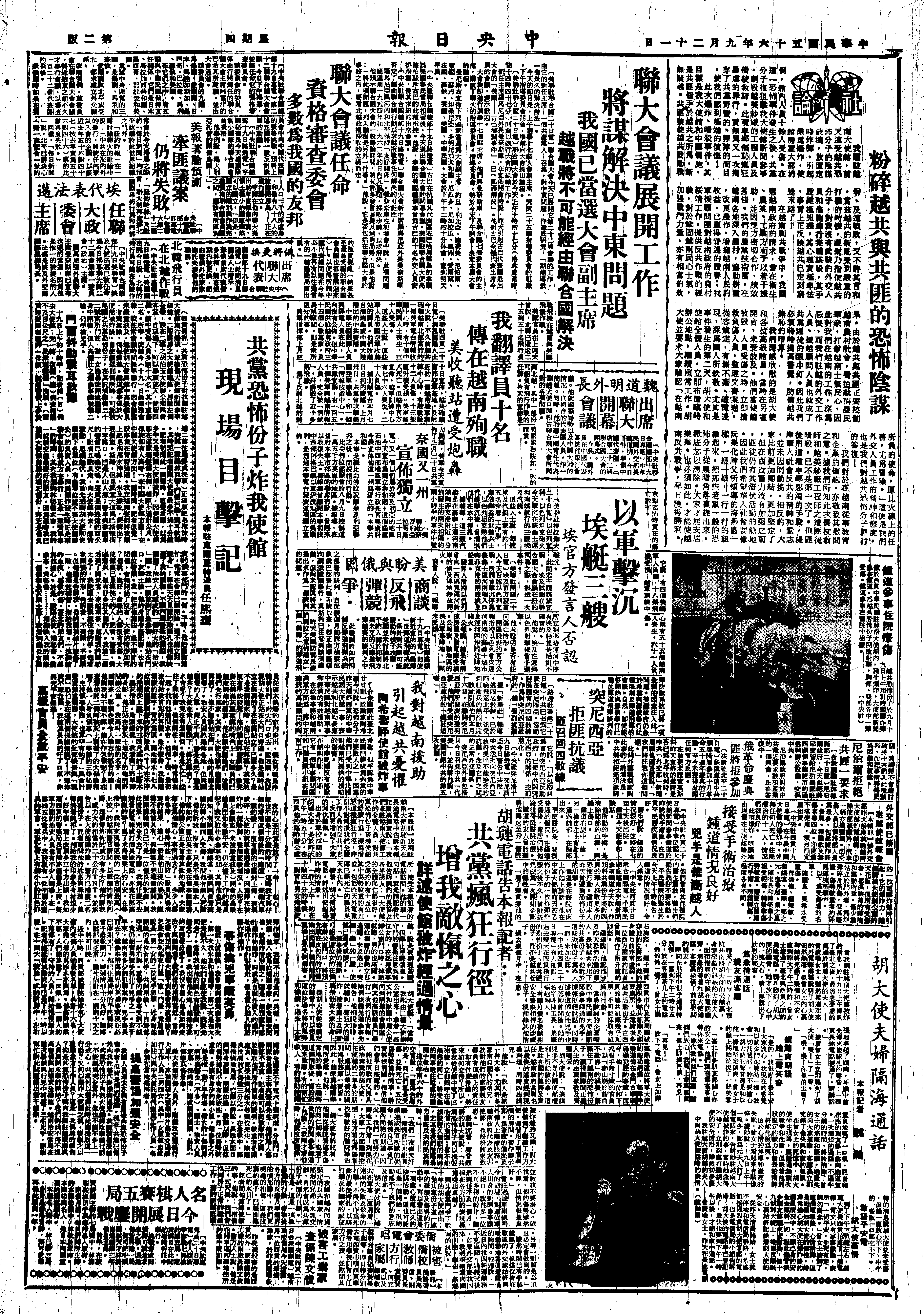 罗外长曼内斯库被选为本届联大主席,他在大会致词中鼓吹“努力创造缓和的气氛”,“结束东南亚的冲突”,“消除威胁和平的温床”;“彻底研究”以“持久解决”中东问题和就裁军问题达成某种协议