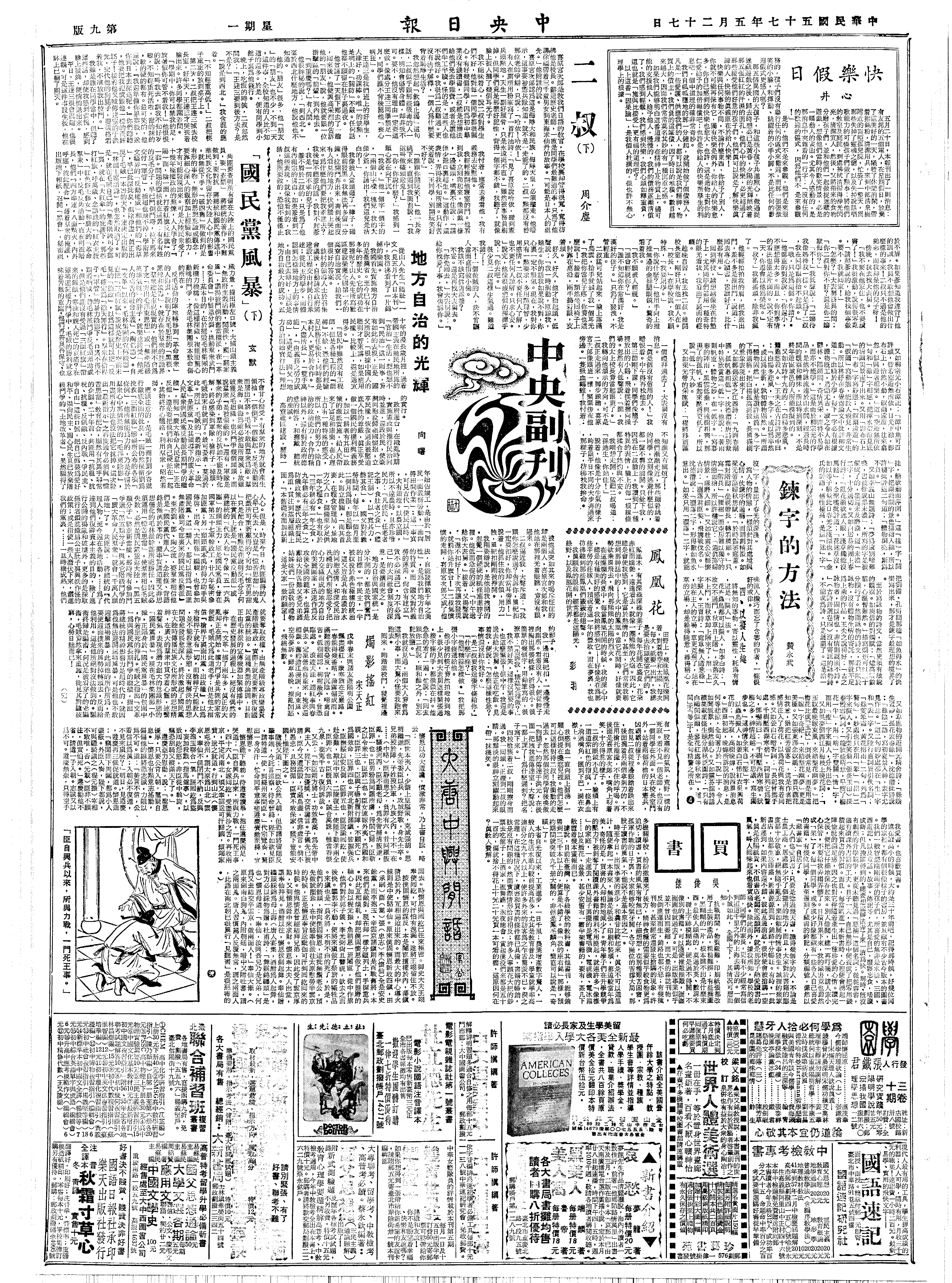 指示全国文艺会谈:文艺工作者当前的使命,在发皇中华文化传统精神特性,积极开展三民主义新文艺运动,使民族文化结合时代精神。