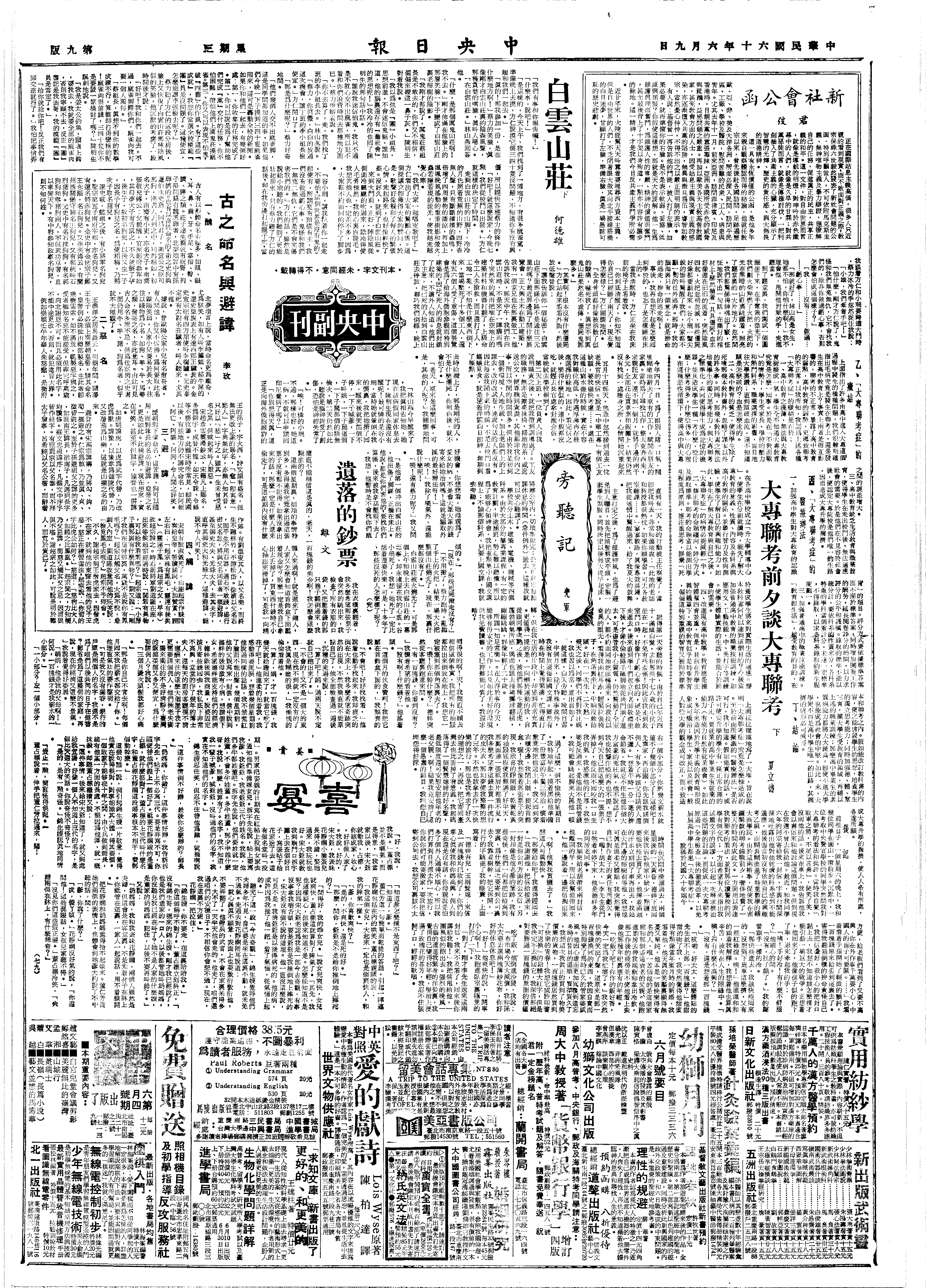 王世杰日记>19710609