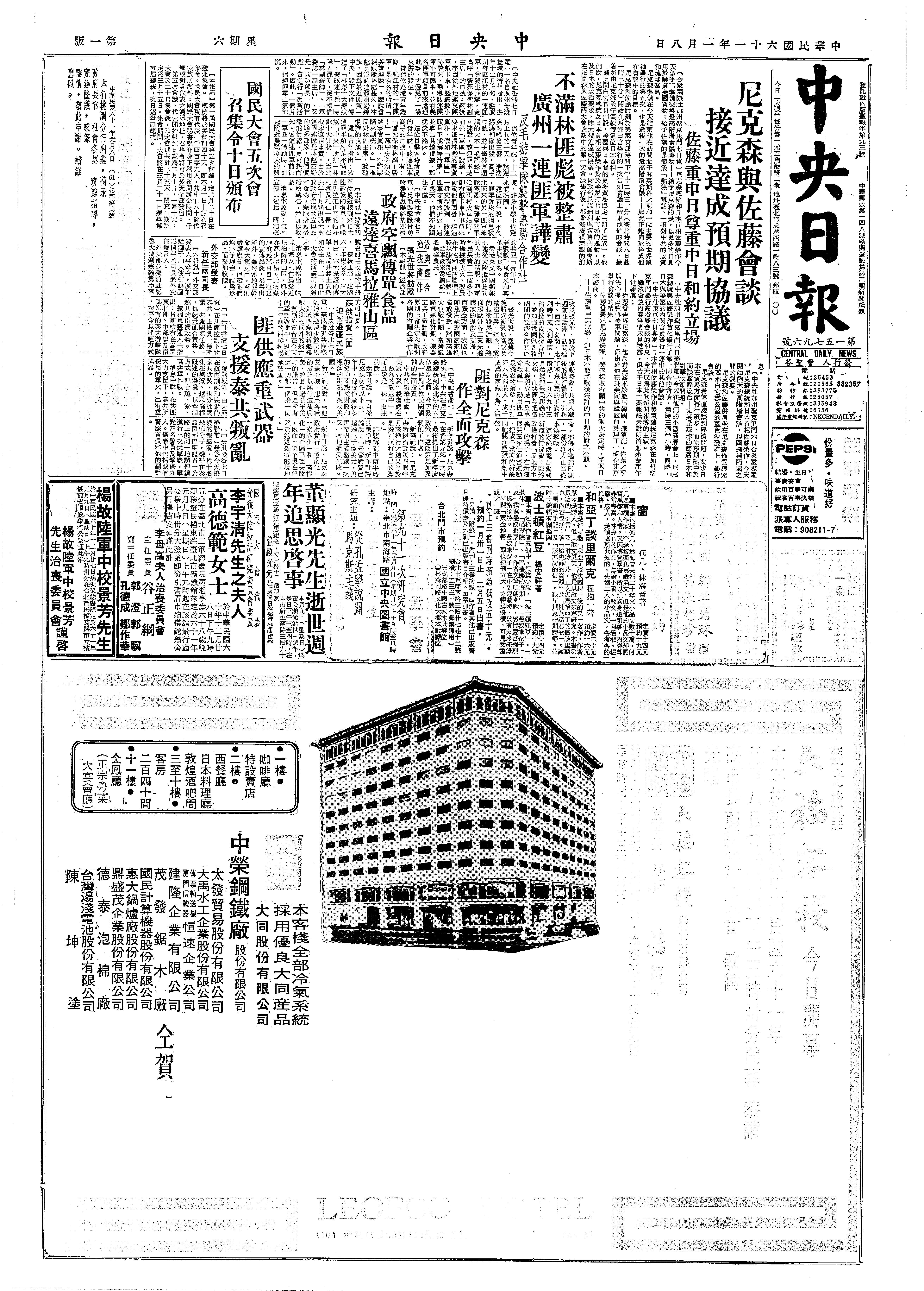美国与人民中国在东北亚问题,应展开初步会谈,作为将来谈判的基础。