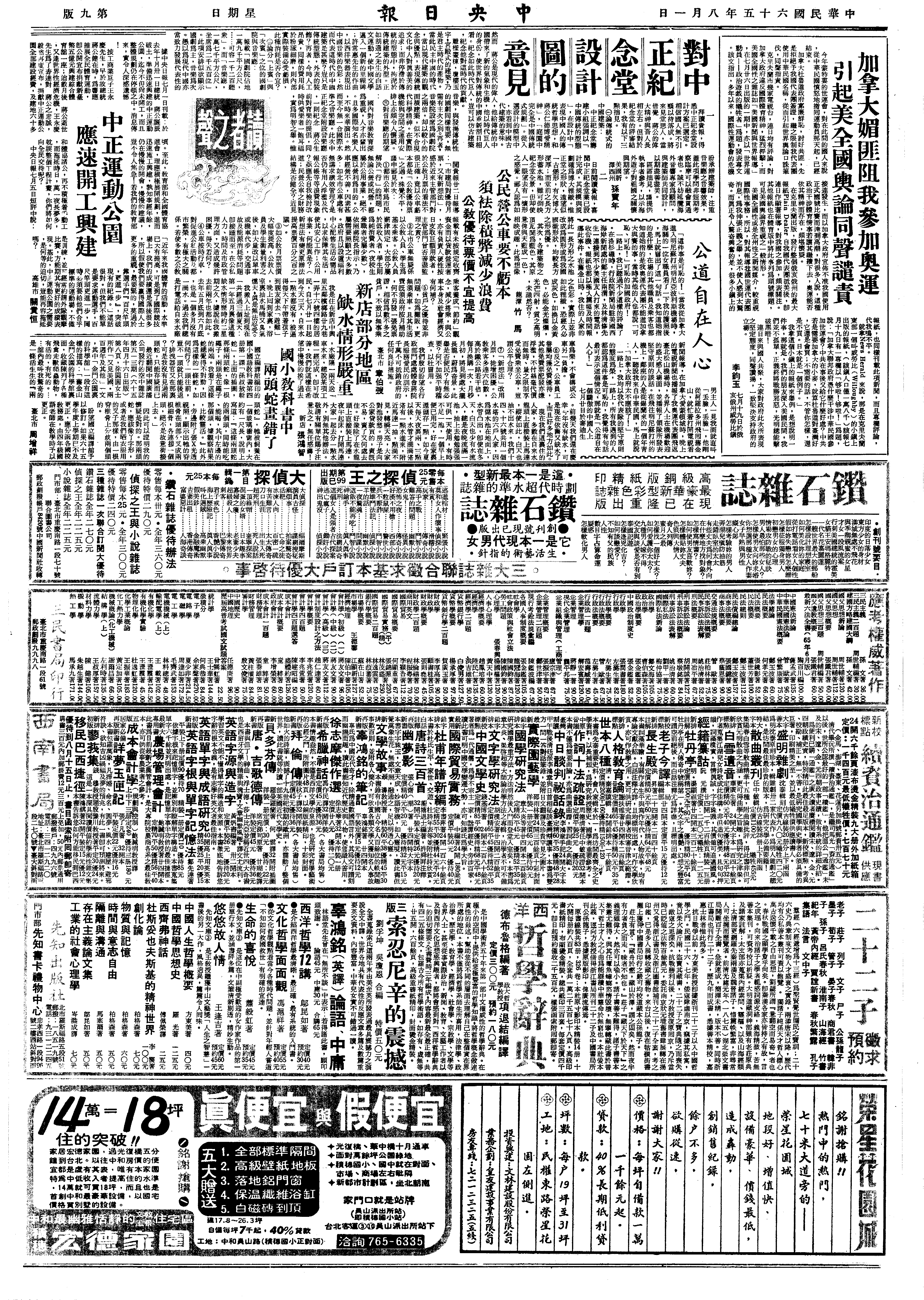 王世杰日记>19760801